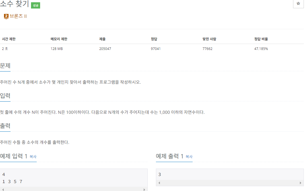 주어진 수들 중에서 소수를 출력하는 문제다.